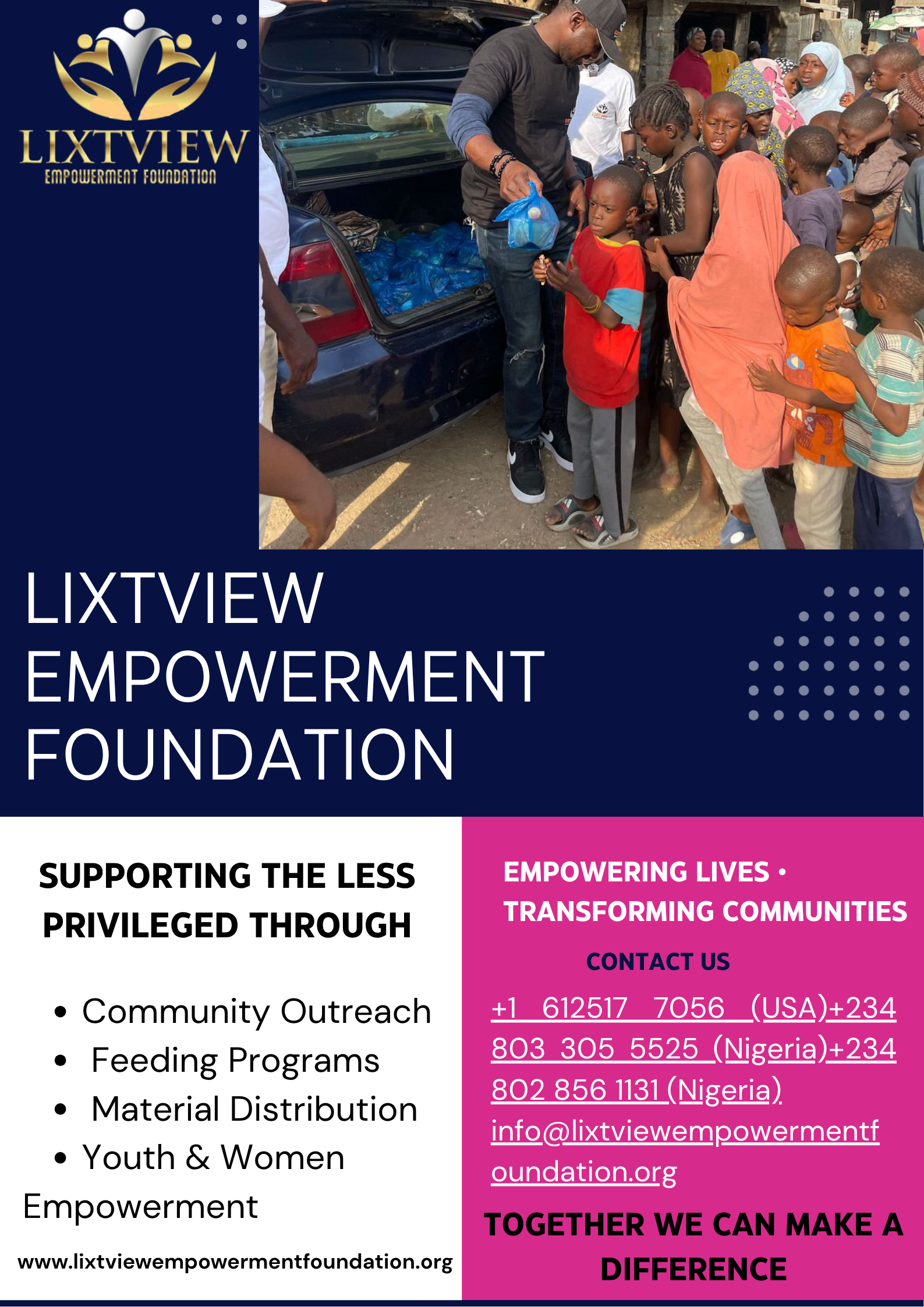 Lixtview Empowerment Foundation is a humanitarian organization dedicated to improving the lives of vulnerable individuals and communities through impactful empowerment and outreach programs.